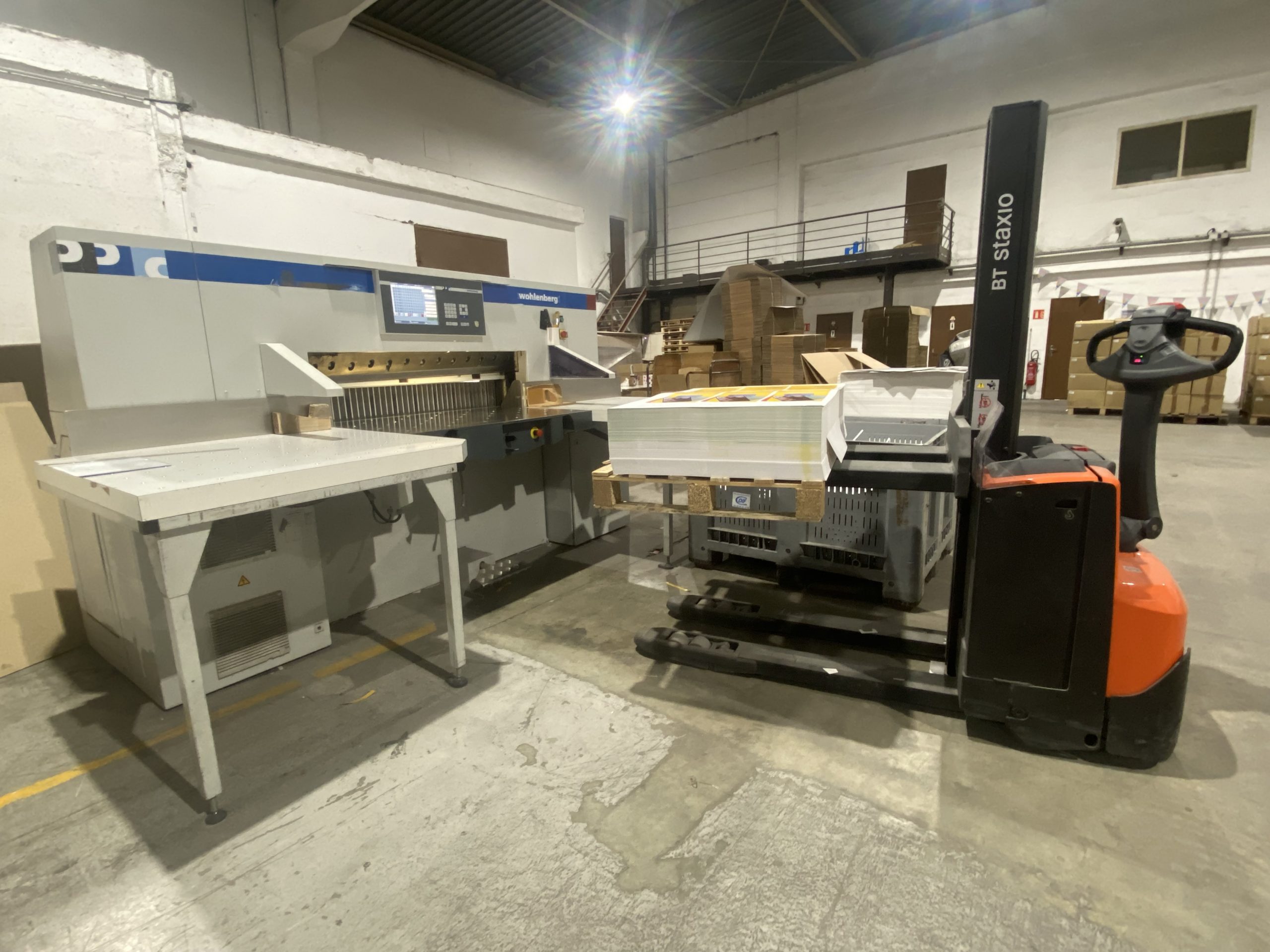 Nos équipements incluent également une machine de mise sous film automatique et un massicot Wohlenberg 115 cm, garantissant une finition soignée et des délais courts.