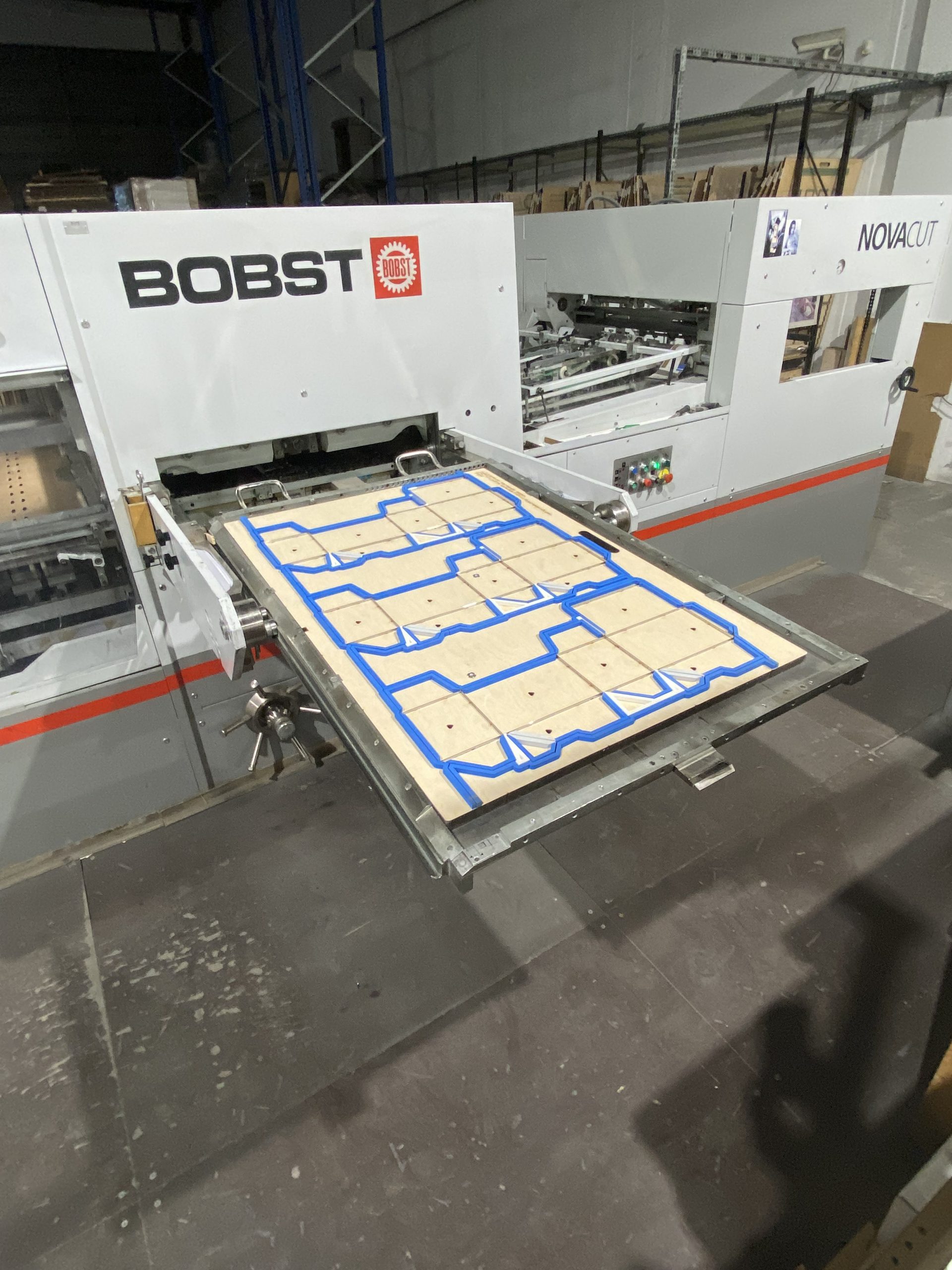 Afin d’assurer une qualité optimale et une grande rapidité d’exécution, nous disposons d’un parc de machines Bobst qui reste dans le monde du packaging la référence pour la découpe et le collage de boites.